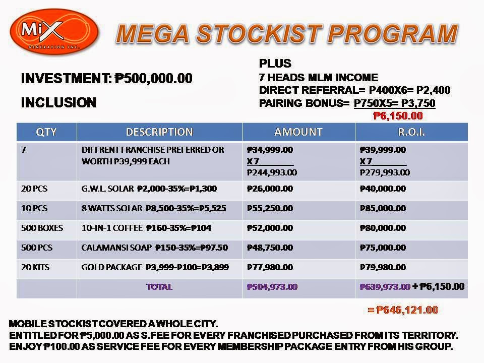You can either be a stockist and be your province supplier by availing either of these packages: